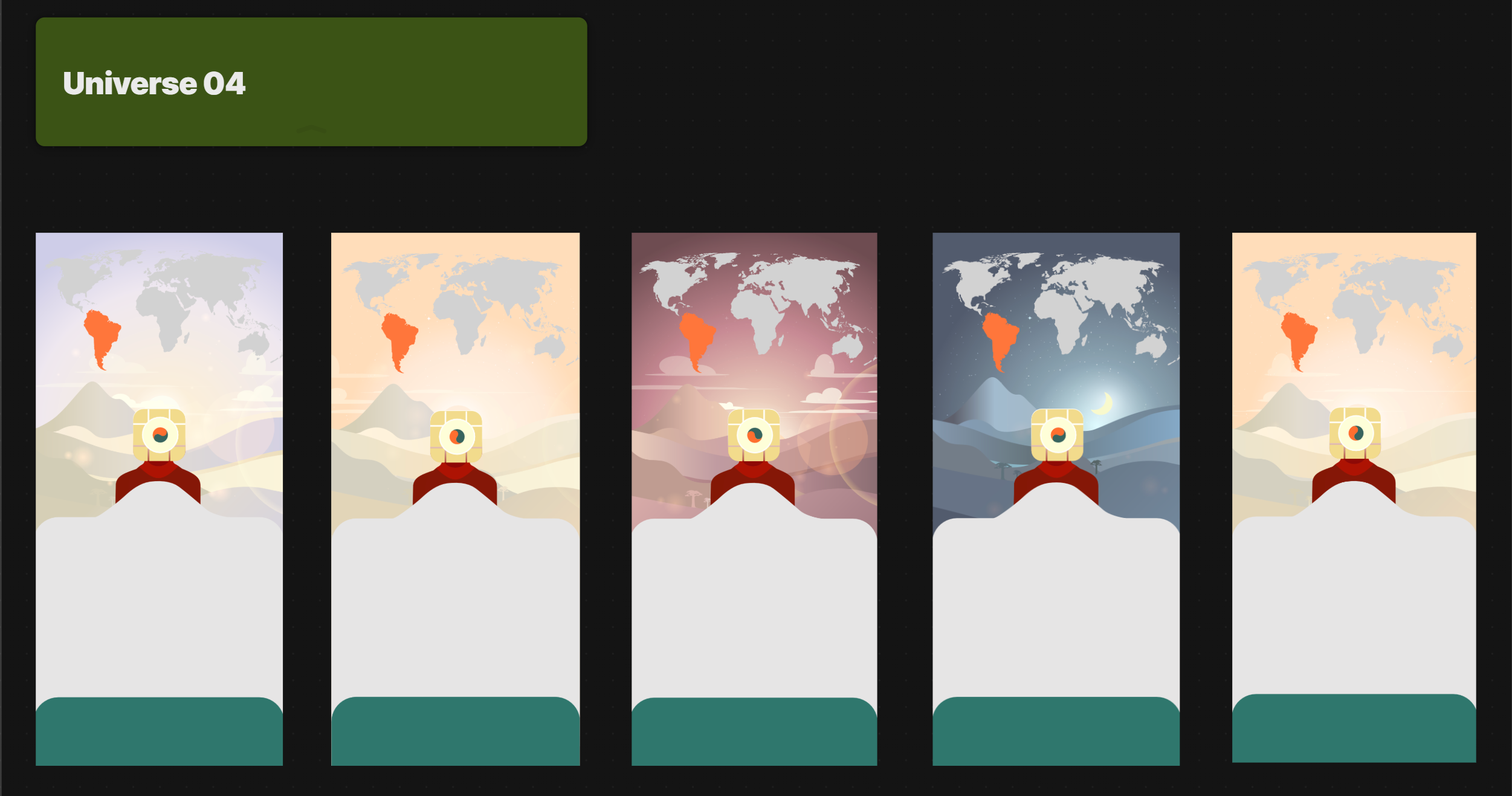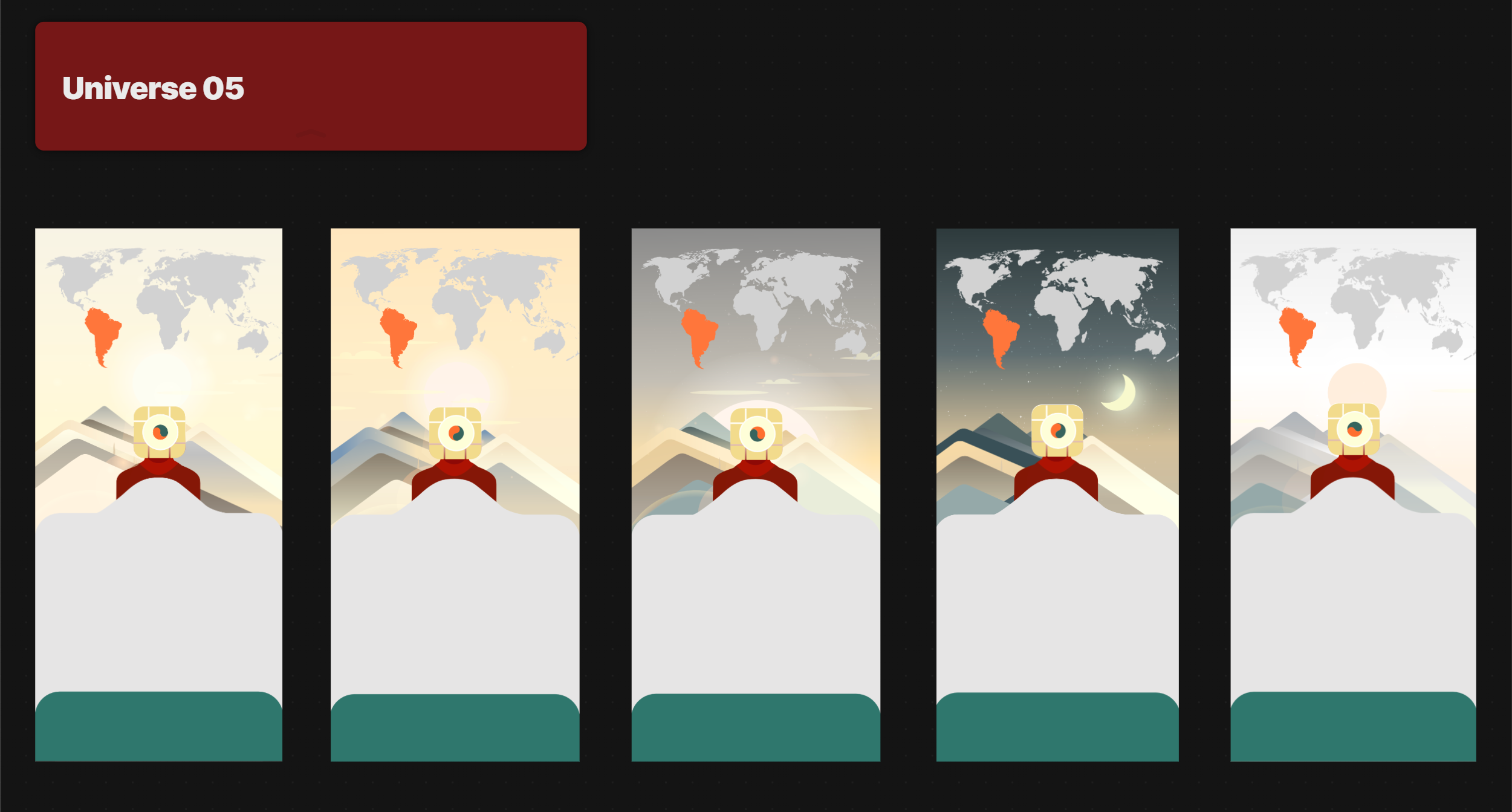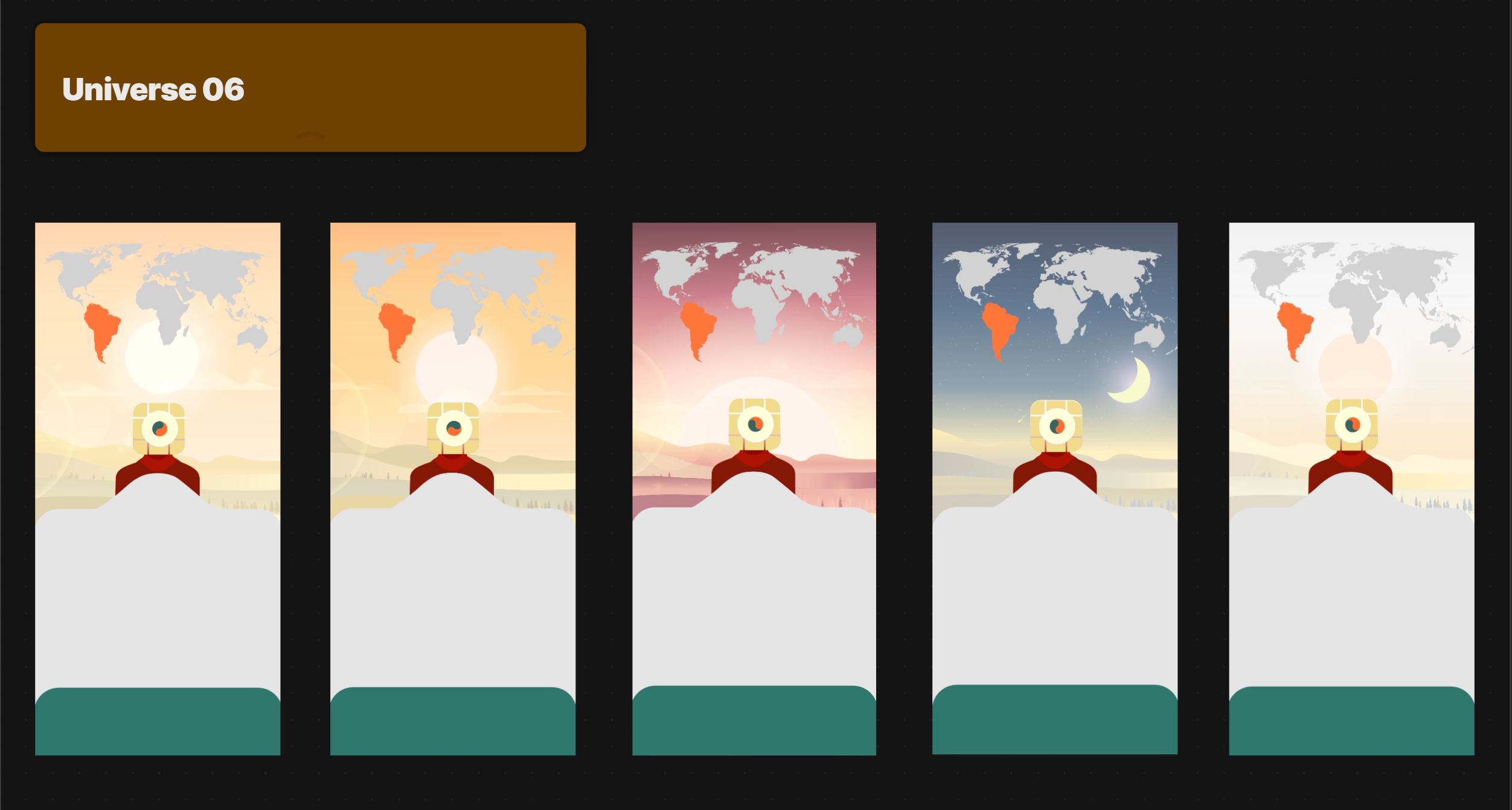 One of the main design and animation challenges I faced wasn’t creating the parallax effect itself, but figuring out how to organize smooth transitions between two parameters for each universe: the time of day and the universe changes.